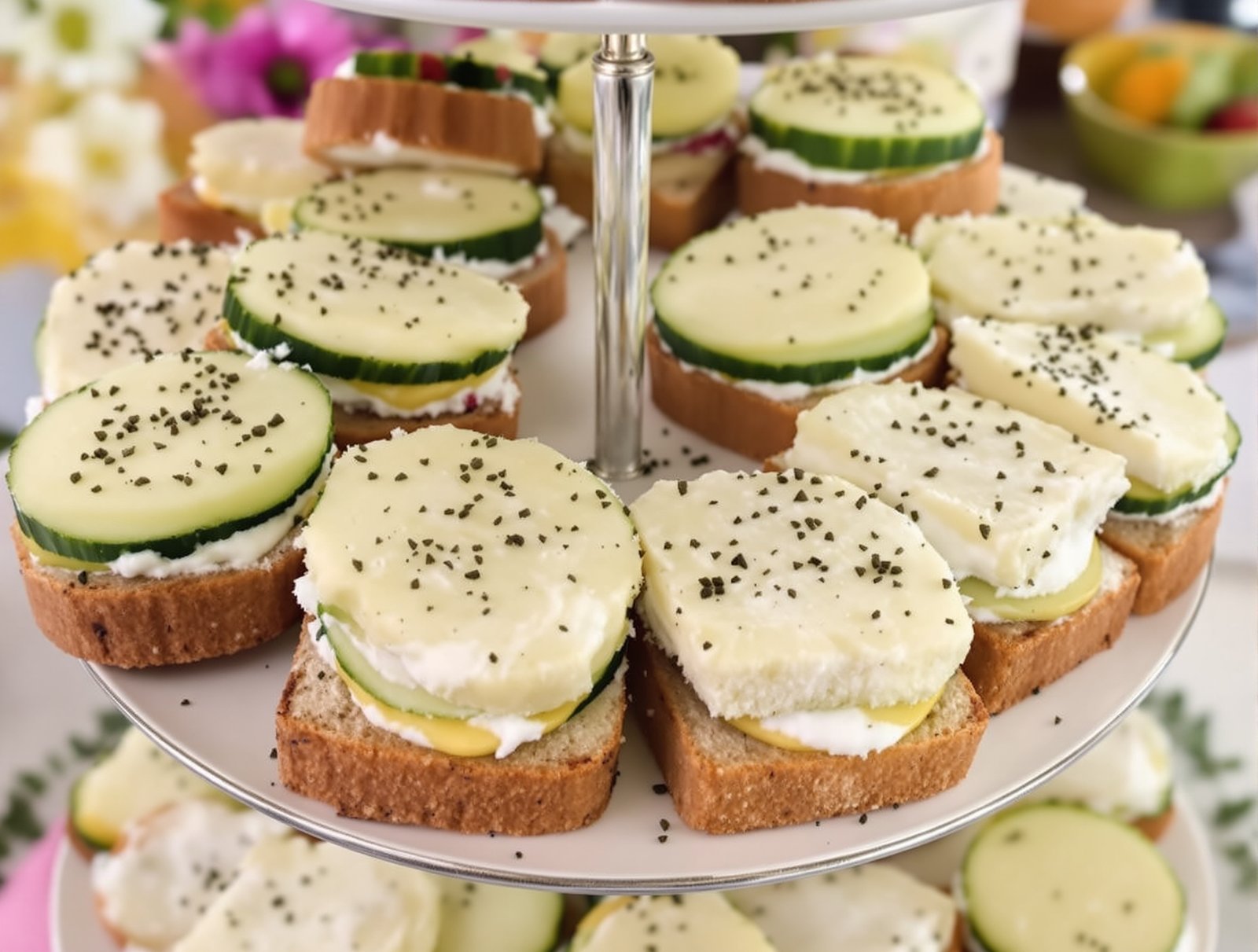 - Assemble the Sandwiches: Spread the cream cheese mixture on each slice of bread. Layer cucumber slices on half of the bread slices, then top with the remaining slices to create sandwiches.