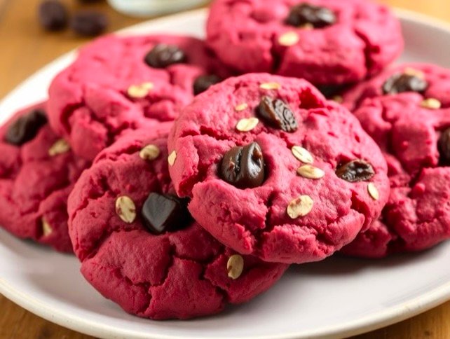 Incorporating beets not only enhances the appearance but also adds nutritional value. Beets are rich in vitamins and minerals, making these cookies a healthier option compared to traditional versions. The combination of oats and raisins further contributes to their wholesome profile.