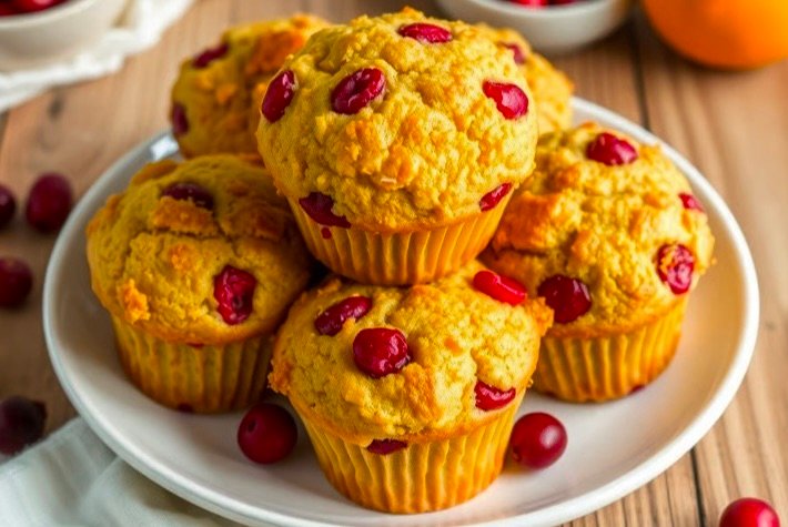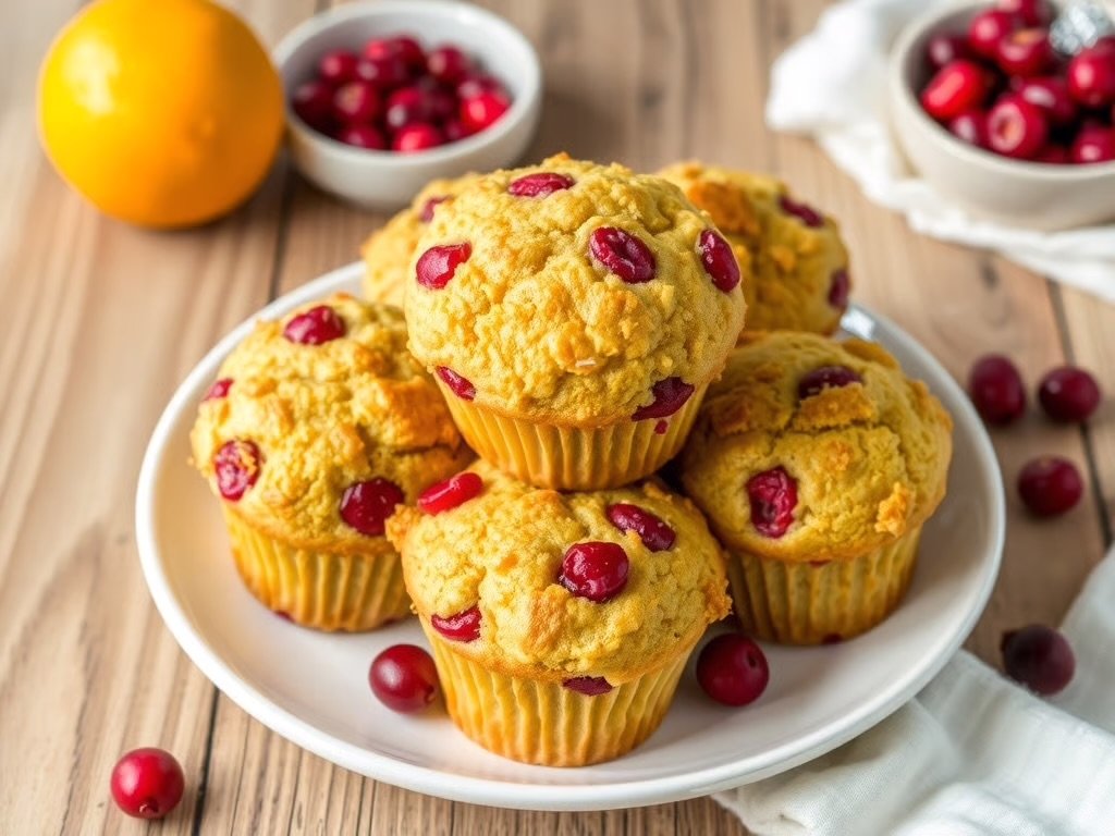 These muffins are made with a blend of cornmeal and all-purpose flour, mixed with fresh cranberries and orange zest for a bright flavor. The recipe takes about 30 minutes from start to finish and makes 12 muffins.