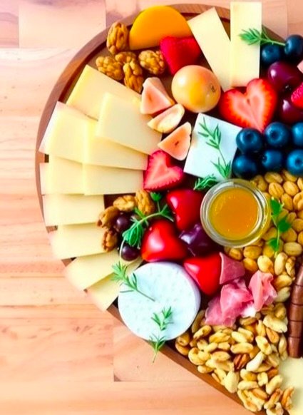 - Prepare the Board: Start with a large cutting board or platter. If desired, use a heart-shaped mold or outline to guide your arrangement.